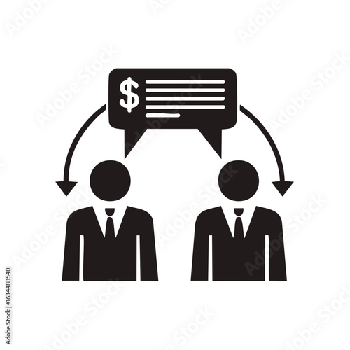 Businessmen exchanging finance information with dollar sign in speech bubble arrow connection