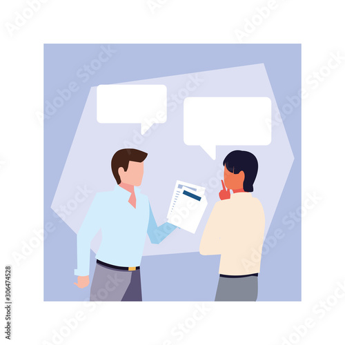 businessmen in the work office with speech bubble , business professional men