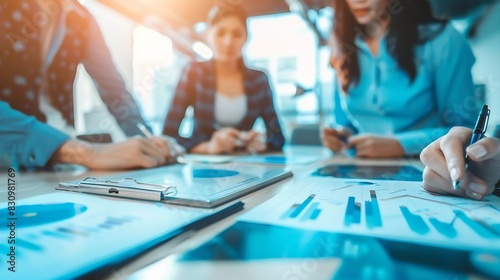 Businesspeople analyzing investment graph meeting brainstorming and discussing plan in meeting room investment concept : Generative AI