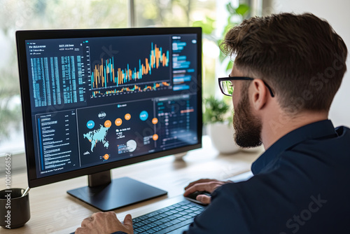 Businessperson analyzing global market trends on a computer screen