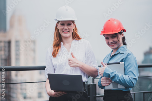 Businesswoman chatting with colleagues to make the company successful.Architects are confident in the construction of architecture.Girls talk teamwork with colleagues for success.