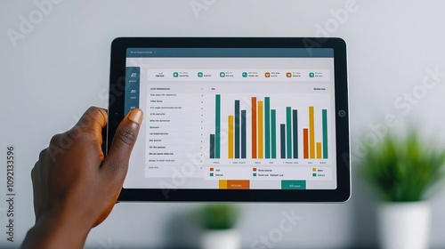 Businesswoman dashboard concept. Interactive Data Analysis on Tablet Display