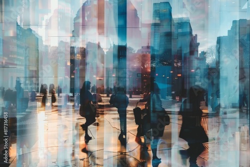 Busy City Scene: Abstract Painting of People Walking. Generative AI