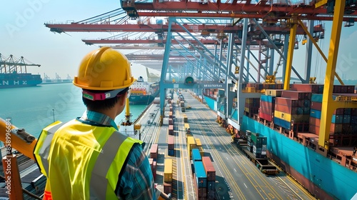 busy container port, showcasing the scale and activity of a major global logistics hub.