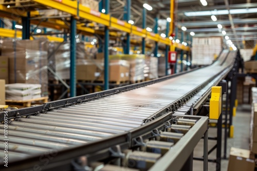 Busy warehouse environment with an effective conveyor belt system moving packages