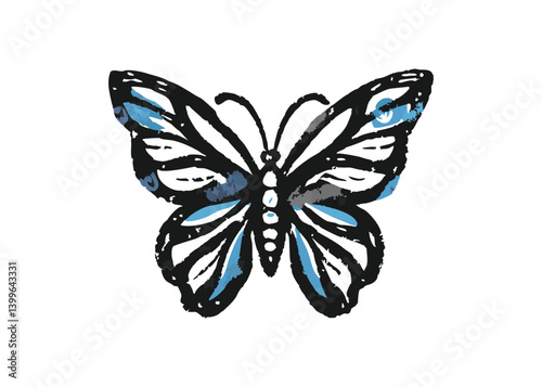 Butterfly abstract logo. Colorful vector silhouette of a butterfly with throw open wings Hand drawn outline vector sketch illustration