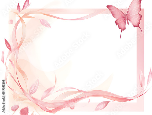 Butterfly Frame with Soft Pink Leaves and Swirls