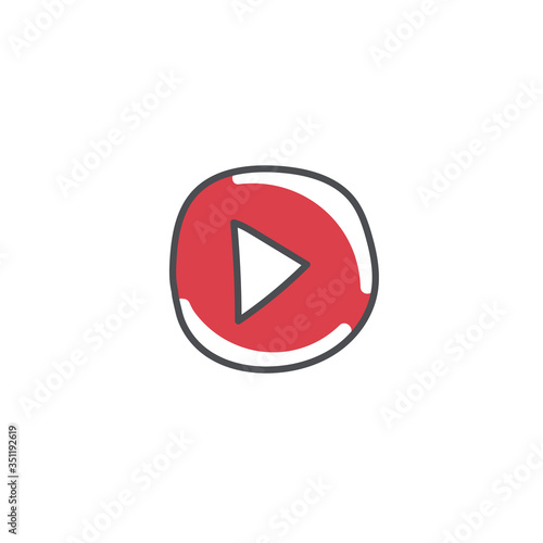 Button play doodle icon, UI vector hand drawn illustration isolated on white background.