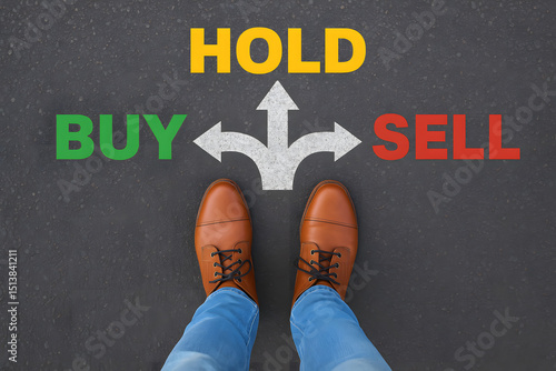 Buy, Sell or Hold Investment Choices Represented on Wooden Blocks Showing Market Decision Making