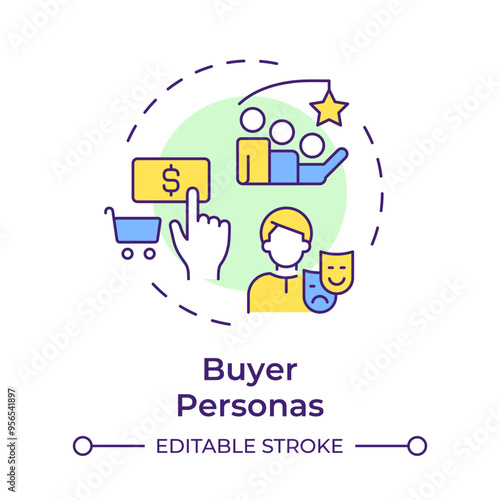 Buyer personas multi color concept icon. Targeting consumers, purchasing. Customer service. Round shape line illustration. Abstract idea. Graphic design. Easy to use in infographic, presentation