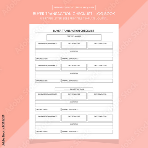 Buyer Transaction Checklist Diary | Notebook Printable Template