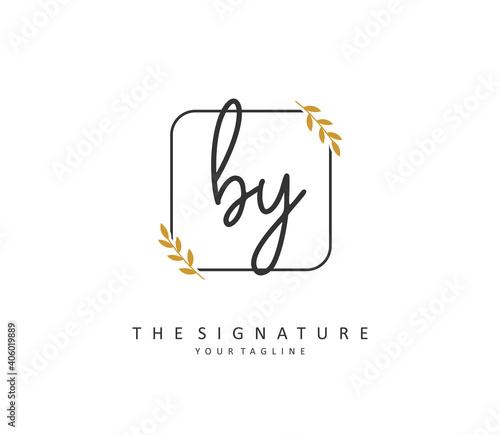 BY Initial letter handwriting and signature logo. A concept handwriting initial logo with template element.