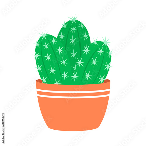 Cactus with thorns. Indoor green plant in a pot. Object and design element. Flat vector illustration isolated on white background