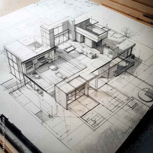 CAD technical architecture interior design sketch drawing of a house