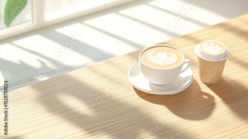 Café Delight, flat white and cappuccino with creamy microfoam on a sunlit table, inviting ambiance, perfect for coffee lovers