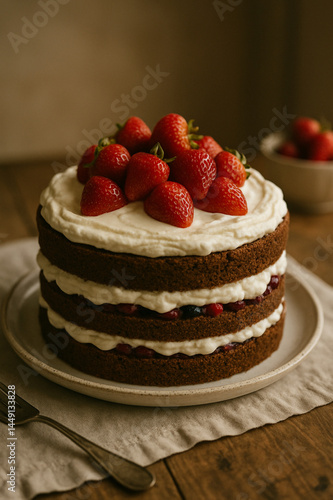 Cake filled with strawberries