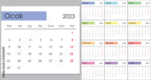 Calendar 2023 on Turkish language, week start on Monday.