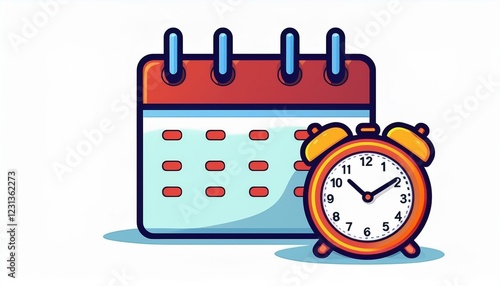 Calendar and clock. Calendar icon with alarm flat design. isolated on white background