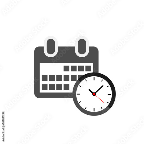Calendar and clock icon. Vector isolated flat style symbol.