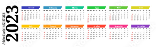Calendar for 2023 isolated on a white background