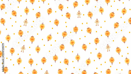 Calendula and lanterns seamless pattern festive isolated white background perfect for holiday textiles branding packaging concept as Festive calendula and lanterns seamless pattern on white background