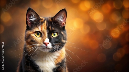 Calico Cat Portrait Against a Warm, Bokeh Background