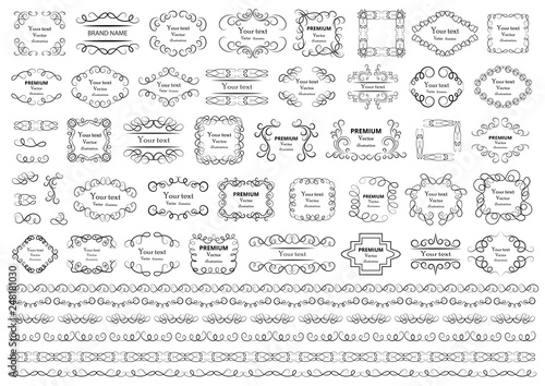 Calligraphic design elements . Decorative swirls or scrolls, vintage frames , flourishes, labels and dividers. Retro vector illustration