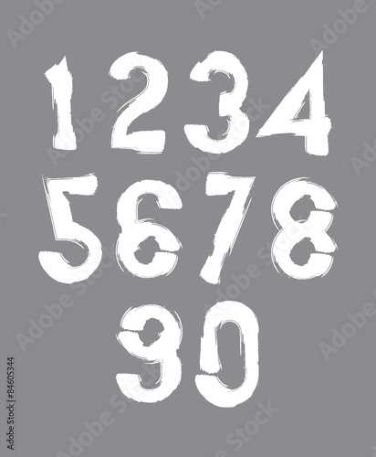 Calligraphic numbers drawn with ink brush, white vector numbers