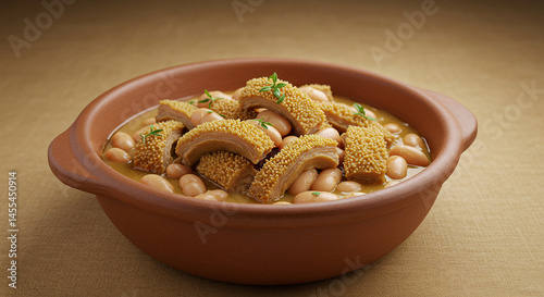 Callos a la madrileña traditional spanish tripe stew recipe in a clay bowl food photography style