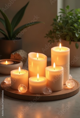 calming candles ethereal crystals serenity soft glow relaxation peaceful ambience home decor mindfulness zen, light, meditation, wellness, tranquility