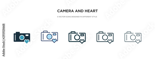 camera and heart picture icon in different style vector illustration. two colored and black camera and heart picture vector icons designed in filled, outline, line stroke style can be used for web,