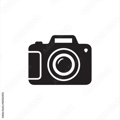 Camera icon in black silhouette style on white background. Simple vector illustration of a digital camera symbol, perfect for photography logo, app, website, or user interface design