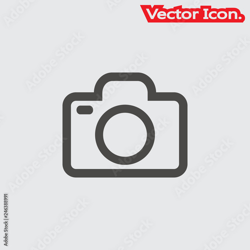 Camera icon isolated sign symbol and flat style for app, web and digital design. Vector illustration.