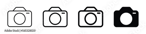 Camera icon set. Photo camera icon symbol with different thickness. Photography camera in outline and flat style for apps and websites, vector illustration