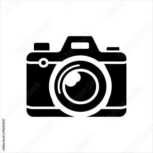 Camera icon vector silhouette illustration on white background.