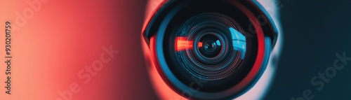 camera lens with vibrant color contrasts, showcasing detailed reflections and an artistic blur effect.