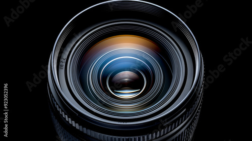 Camera lens zooms in, capturing a shiny black background reflection ,The professional photographer used an old fashioned SLR camera for photographing ,Lovely Black Color Lens Extension