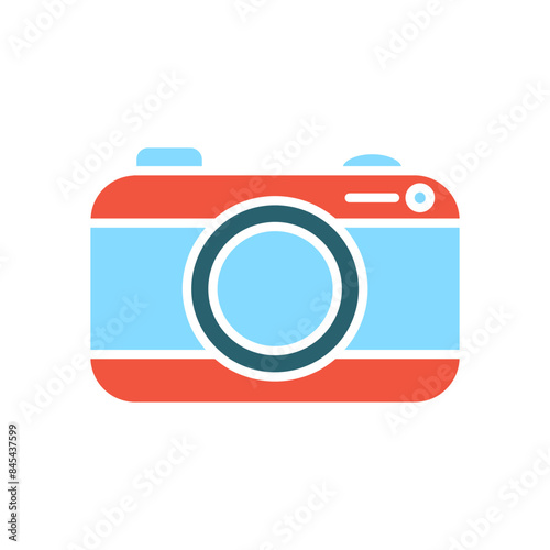Camera set icon. Red and blue camera, lens, photography, digital, equipment, technology, capturing moments, travel, hobby.