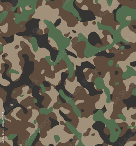Camouflage pattern background seamless vector illustration. Classic clothing style masking camo repeat print. Green brown black olive colors forest texture