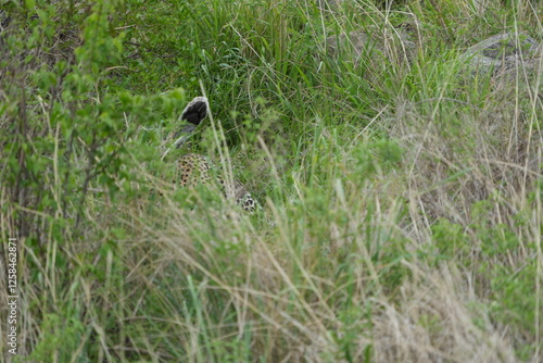 camouflaged leopard hiding with its cub in the serengeti national park in tanzania