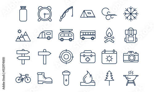Camping icon showing outdoor activity with tent and nature in modern outline style