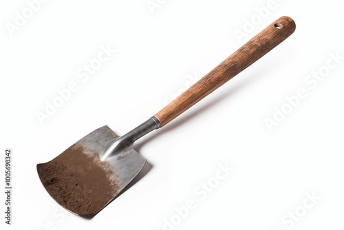 camping shovel and soil isolated on white, Hand tool. Generative ai