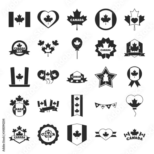 canada day, independence freedom national patriotism celebration icons set silhouette style icon
