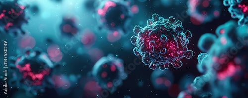 Cancer cells idea. Close-up view of a virus on a colorful, abstract background showcasing cellular structures.
