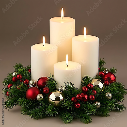 Candle Centerpiece with Greenery and Baubles A Warm and Inviting Table Decoration for a Cozy Atmosphere