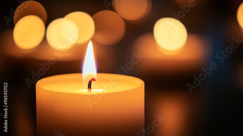 Candles Burning at Night. White Candles Burning in the Dark with focus on single candle in foreground