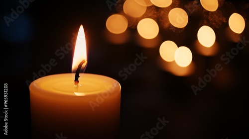 Candles Burning at Night. White Candles Burning in the Dark with focus on single candle in foreground