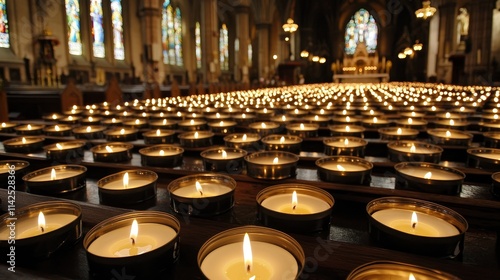 Candles, Warm Glow, Soft Light, Serenity, Peaceful Atmosphere, Church Ambiance, Spiritual Reflection