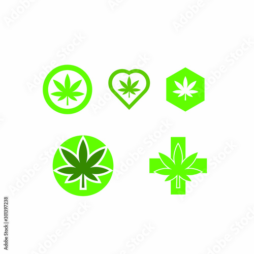 Cannabis sets of logo green color white background - Vector
