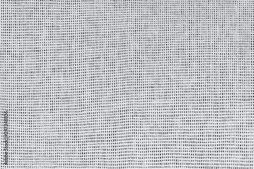 Canvas textile texture of white fibers on a dark background. Plain weave, close up